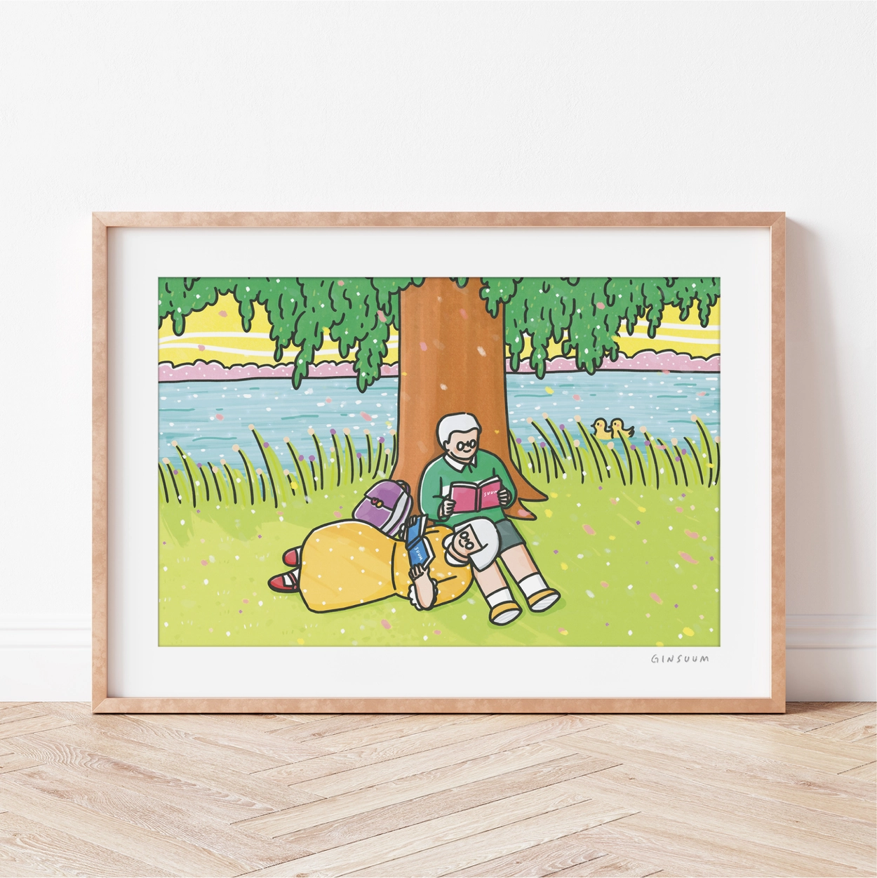 [여백포스터] 나무그늘아래 / A3 가로형 / 액자