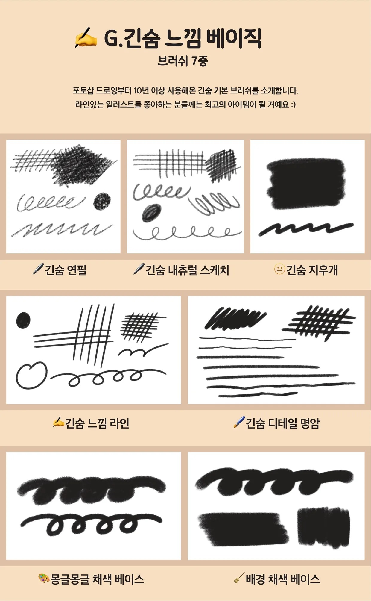 G. ✍️긴숨 느낌 베이직 - 7종