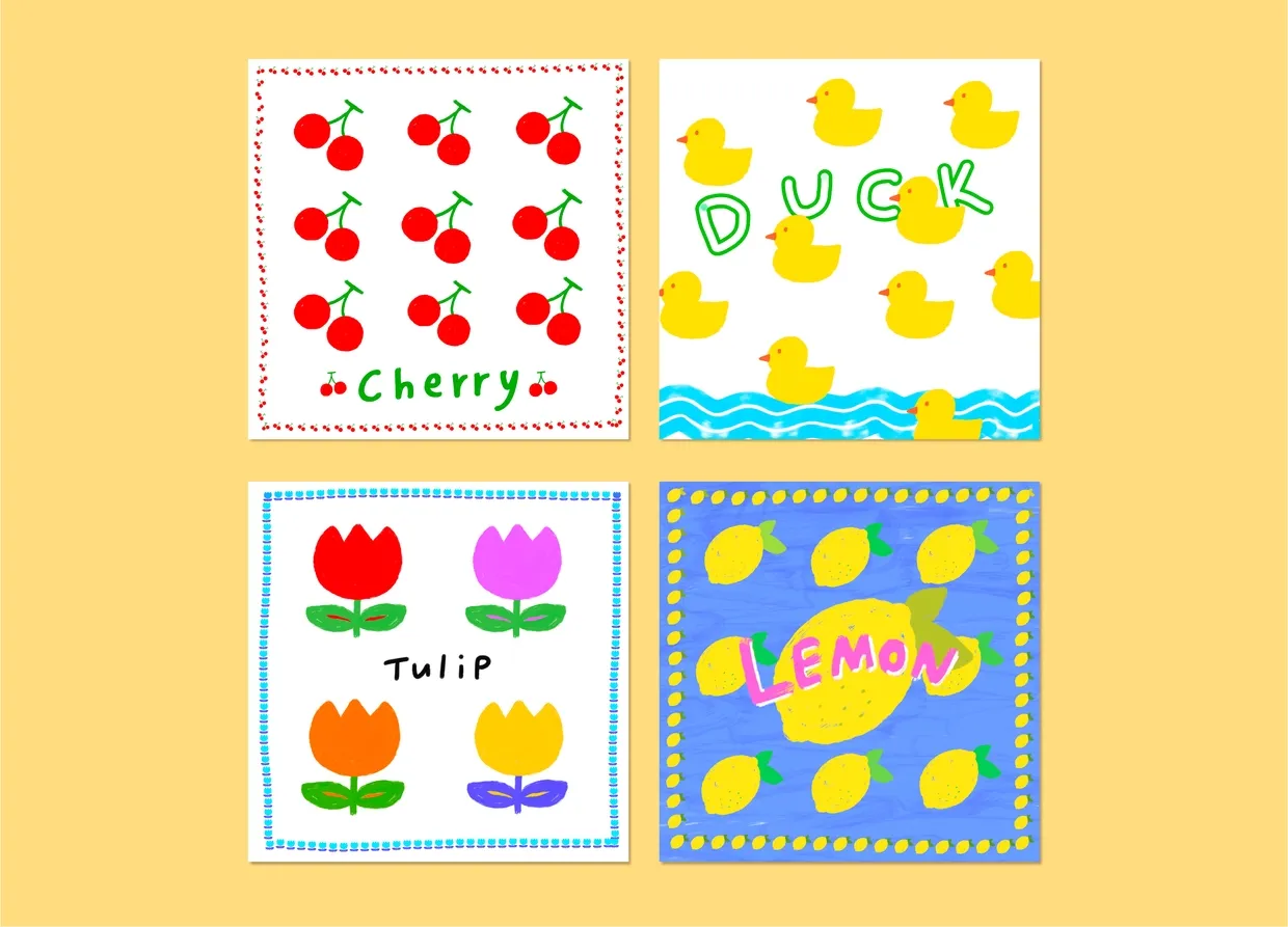 🍒체리 / 🐤오리 / 🌷튤립 / 🍋레몬 브러쉬로