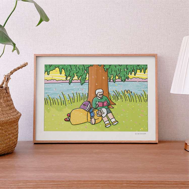 [여백포스터] 나무그늘아래 / A3 가로형 / 액자