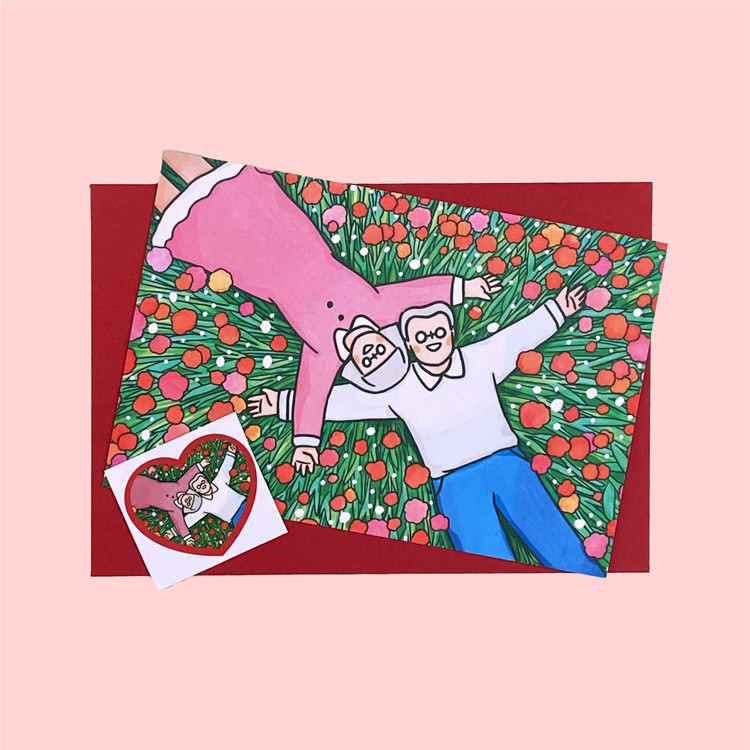 [카드] 행복 / 구딩노부부 일러스트 카드+봉투+스티커 세트