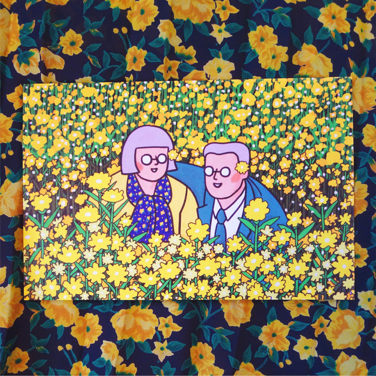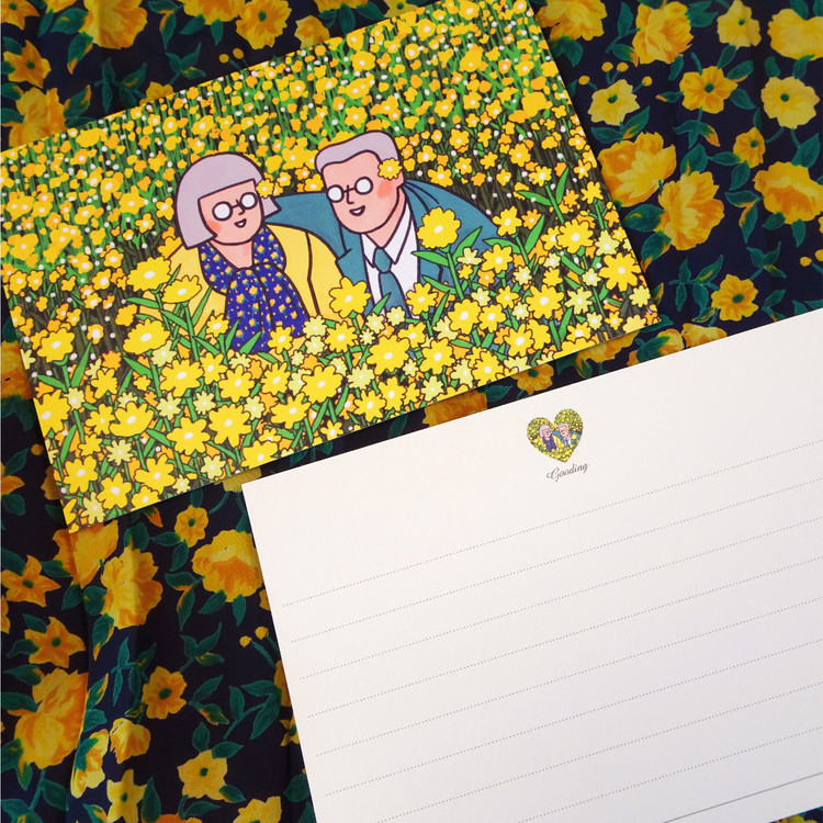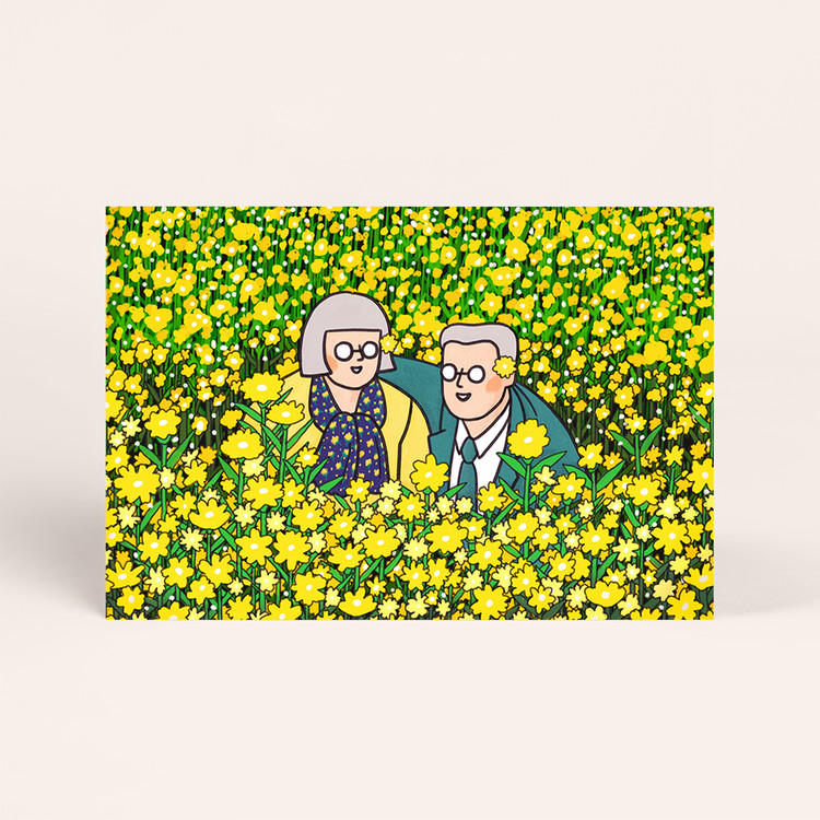 [엽서] 꽃밭에서 / 구딩 노부부 일러스트 엽서 / 구딩아트, 긴숨