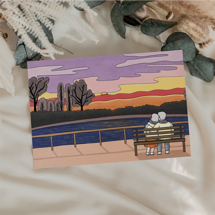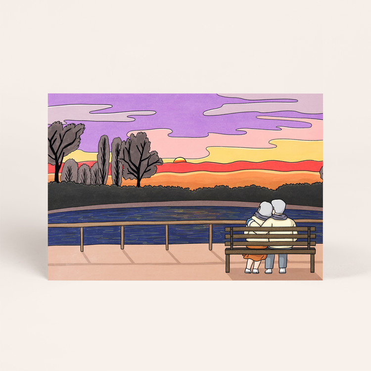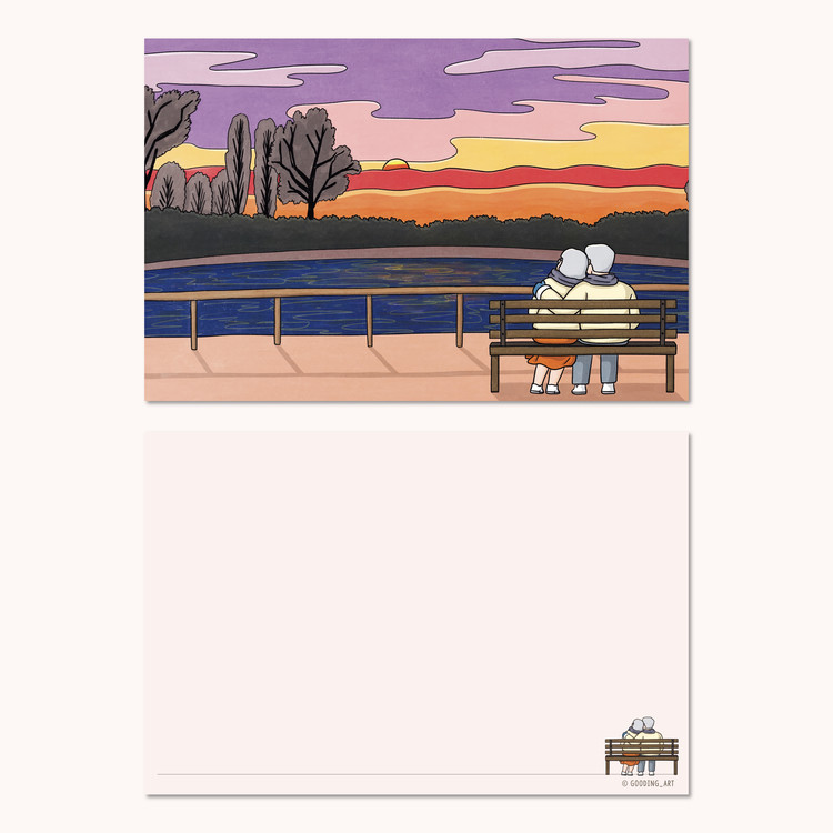 [엽서] 일몰, 긴숨 / 150X100mm 가로형 엽서 / 구딩노부부 일러스트