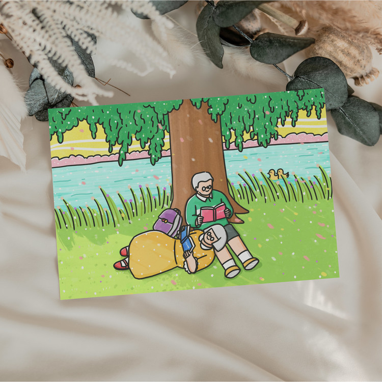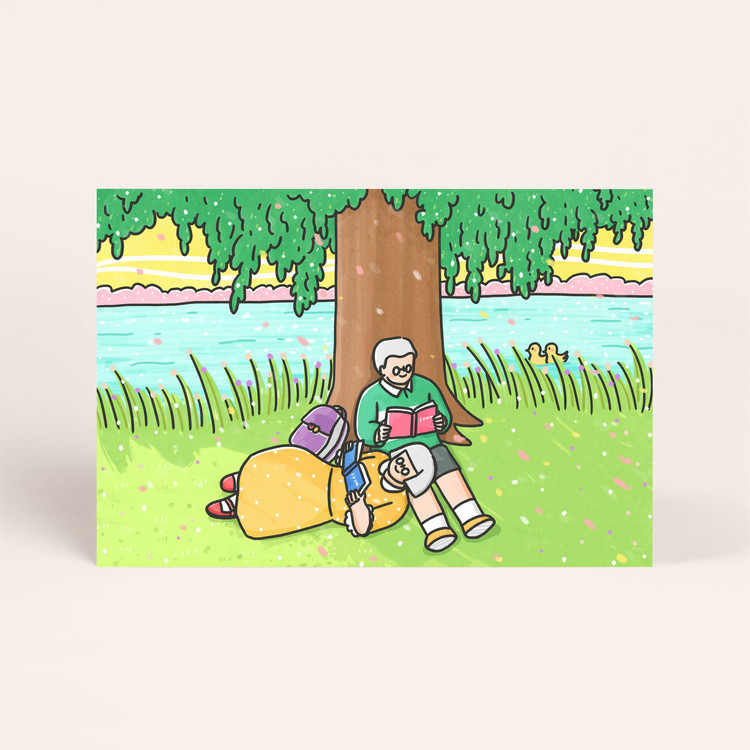 [엽서] 나무그늘아래, 긴숨 / 150X100mm 가로형 엽서 / 구딩노부부 일러스트