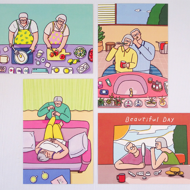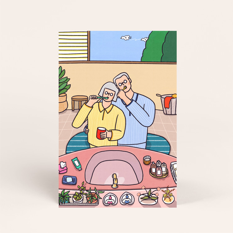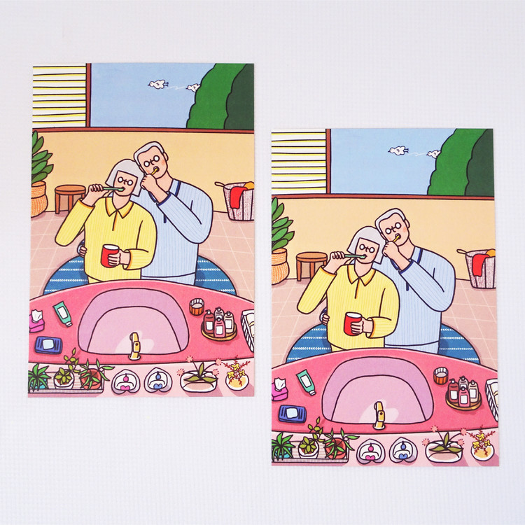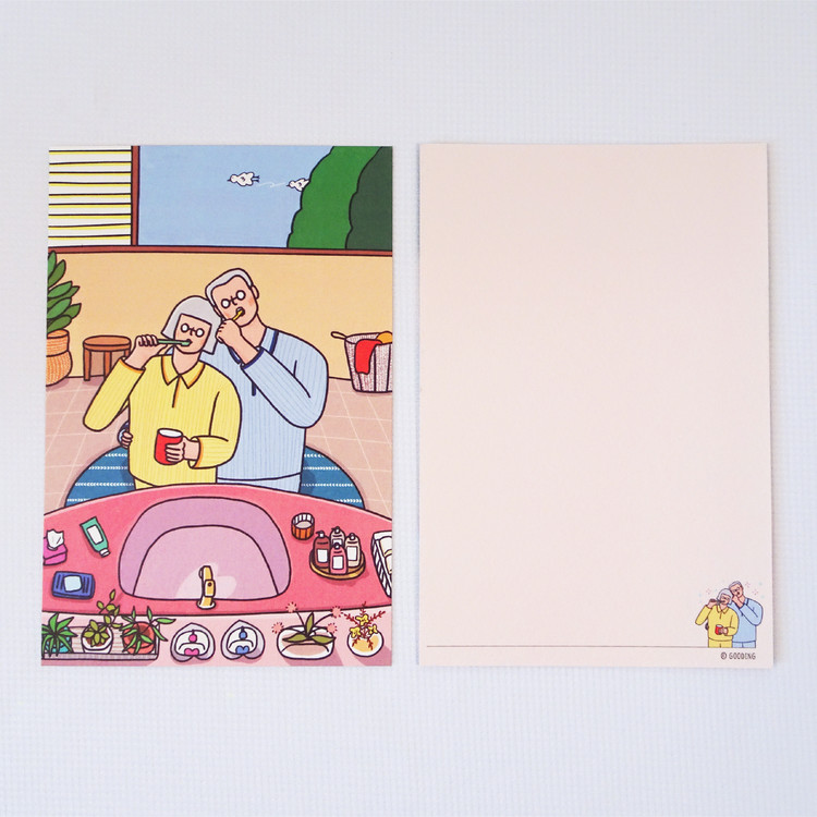 [엽서] 아침양치, 긴숨 / 100X150mm 세로형 엽서 / 구딩노부부 일러스트