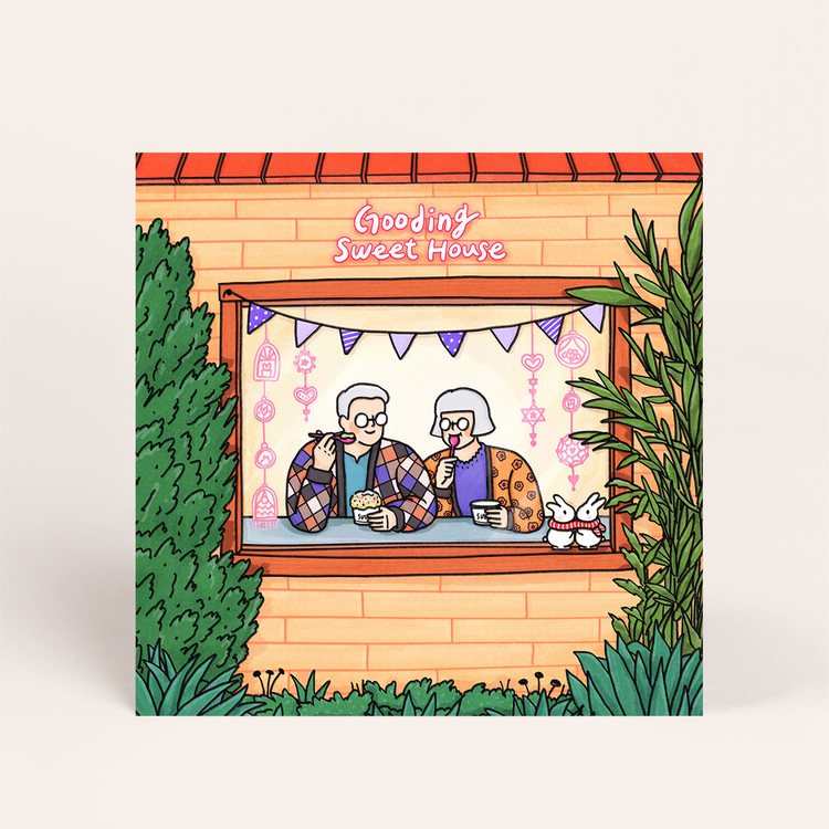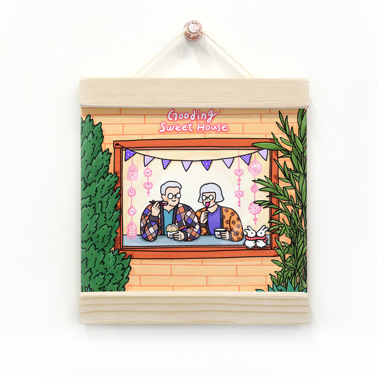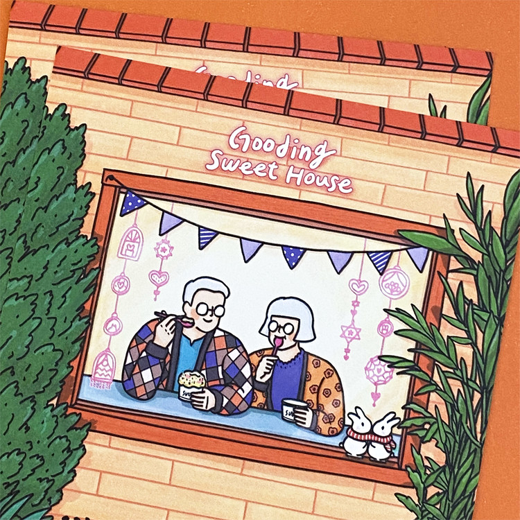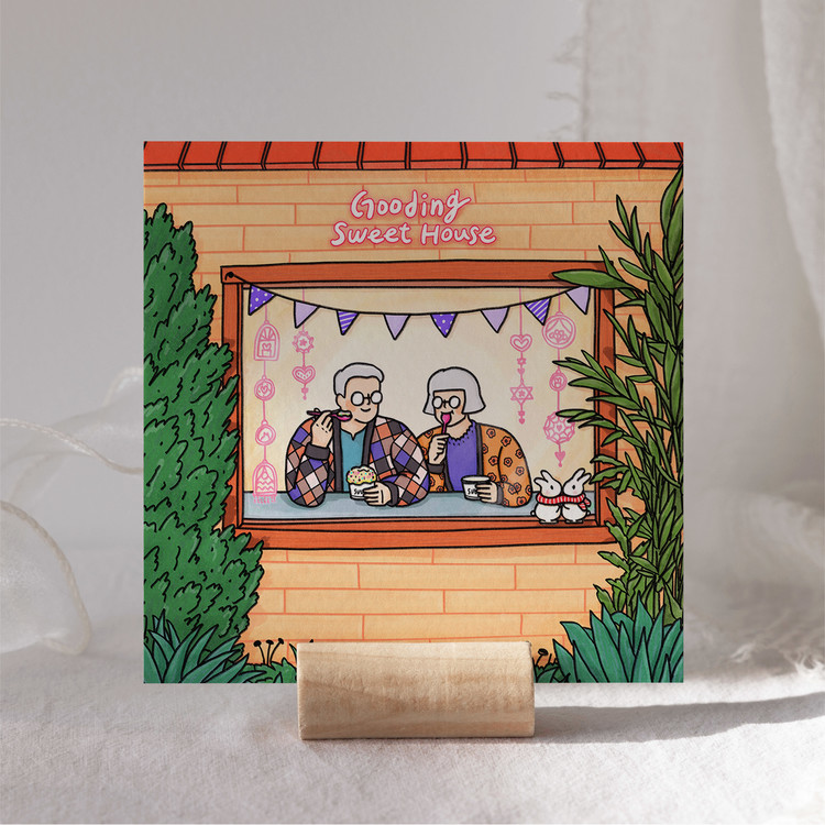 [엽서] 겨울 아이스크림, 긴숨 / 135X135mm 정사각형 엽서 우드행잉액자 / 구딩노부부 일러스트